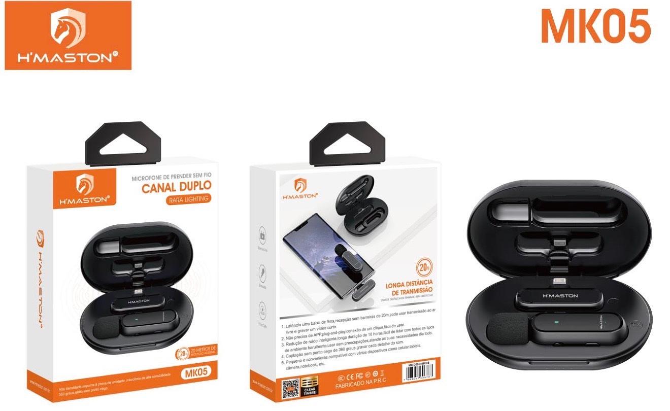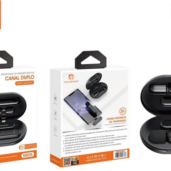 Microfone de Lapela para iPhone Hmaston sem Fio Canal Duplo MK-05