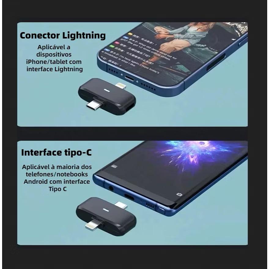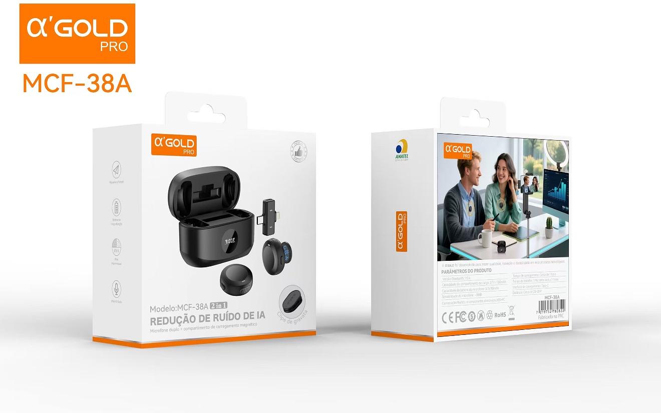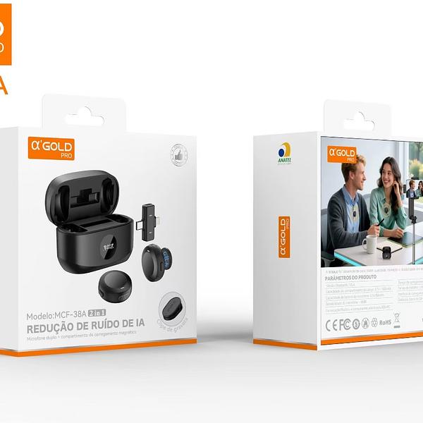 Microfone de Lapela Sem Fio 2 in 1 Type C e Lightning REDUCÃO DE RUÍDO DE IA Microfone duplo MCF-38A