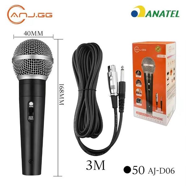 Microfone Profissional Sm58 Com Cabo 3Metros Chave Liga E Desliga Alta Sensibilidade