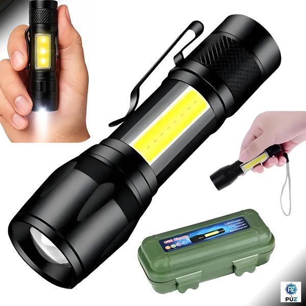 Mini Lanterna Tática Potente Zoom Recarregável Usb + Estojo Cor da lanterna Preto Cor da luz Branca