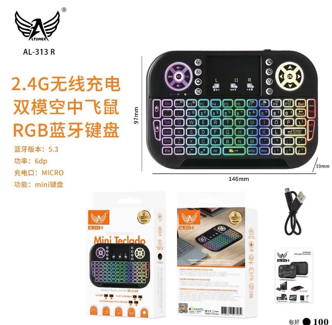 Mini Teclado Sem Fio 2 Em 1 Rgb Al-313 R Com Touchpad Atomax