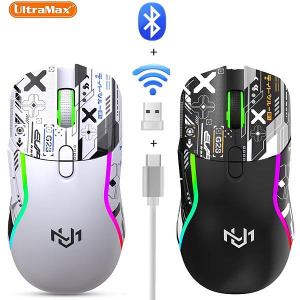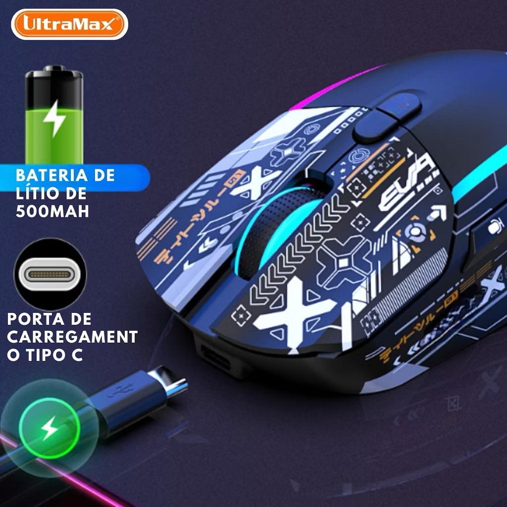 Mouse Gamer Sem Fio 2.4GHz + Bluetooth 5.0 RGB Recarregável