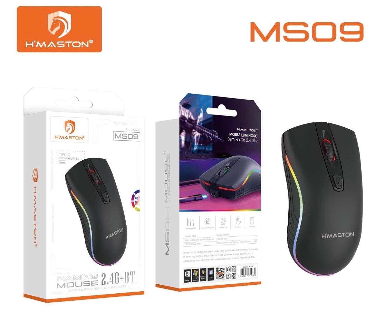 MOUSE GAMING 2.4G+BT H'MASTON REGARREGÁVEL MS09