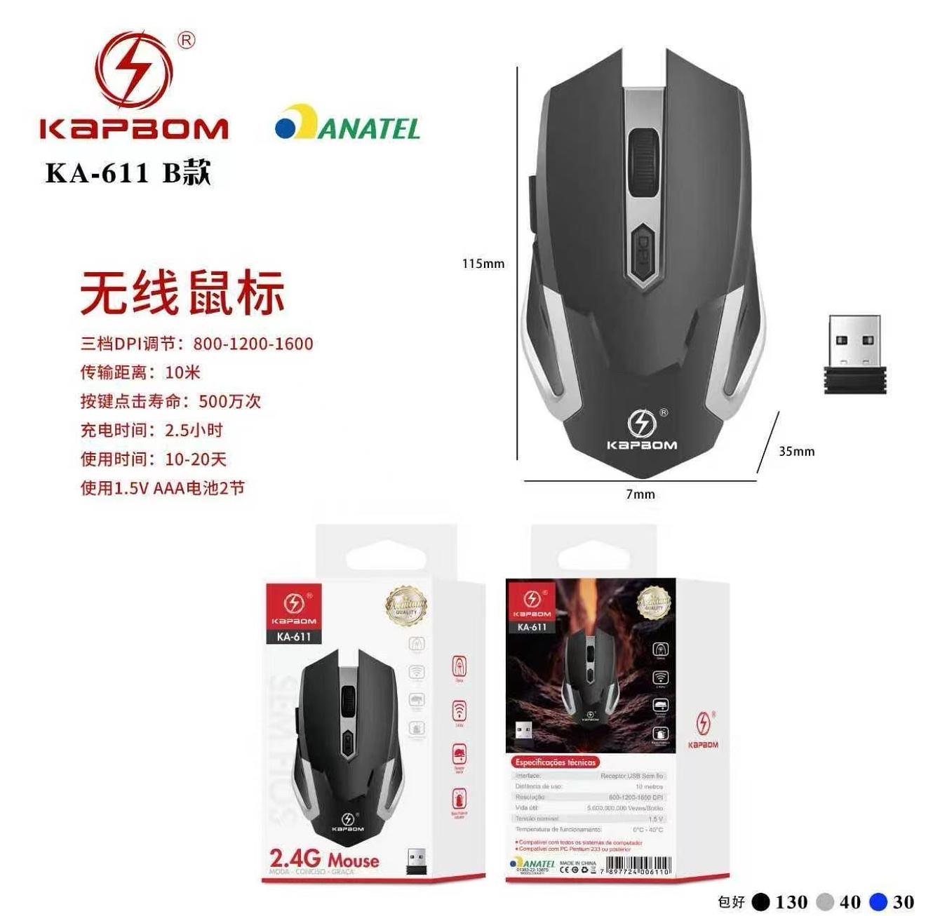 Mouse Sem Fio KAPBOM KA-611 2.4G – Gamer, Ergonômico, Alta Precisão, USB,