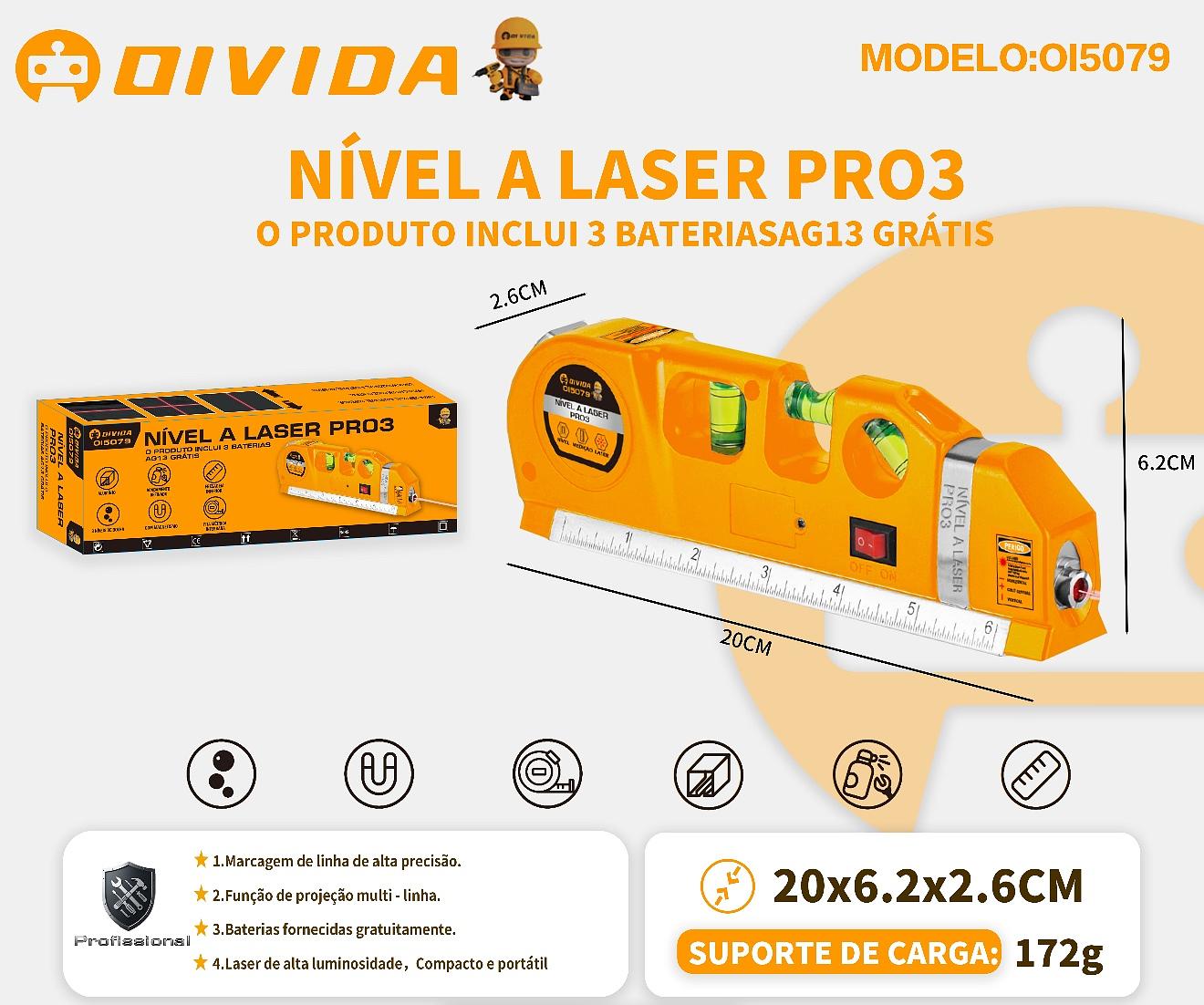 Nível Laser Pro3 Trena Prumo 3 Pontos