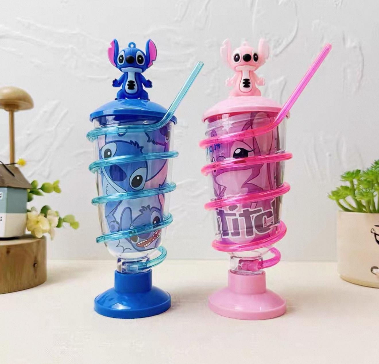 360ml Novo copo infantil STITCH com canudo e luz colorida em formato de desenho animado, portátil e com luz.
