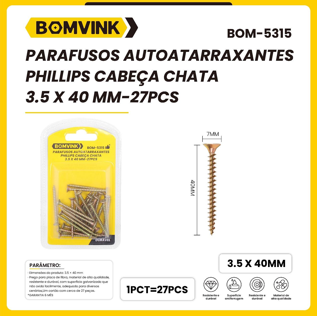 PARAFUSOS AUTOATARRAXANTES PHILLIPS CABEÇA CHATA 3.5 X 40 MM-27PCS