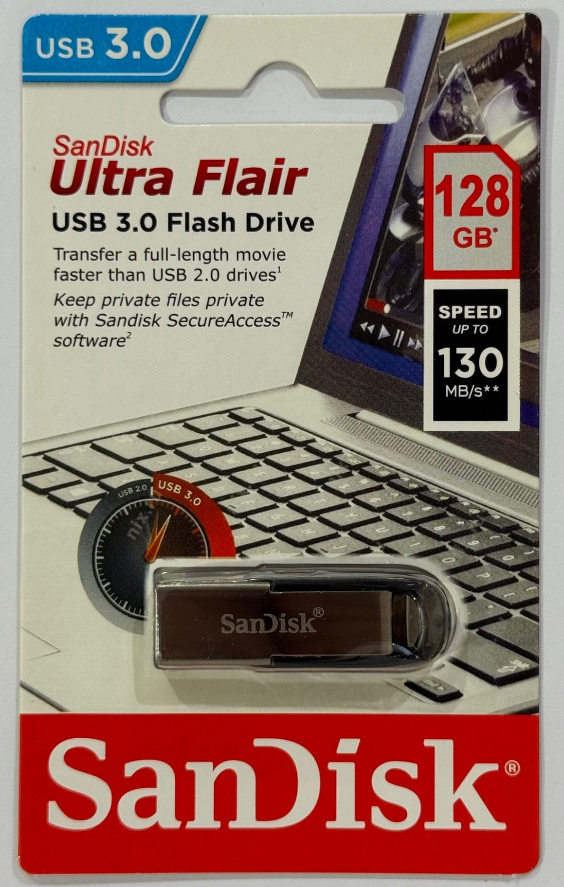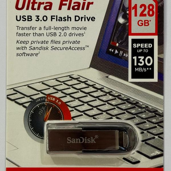 Pendrive SanDisk Ultra Flair 128GB 3.0 prateado e preto