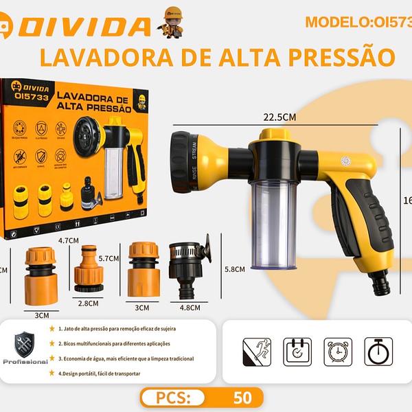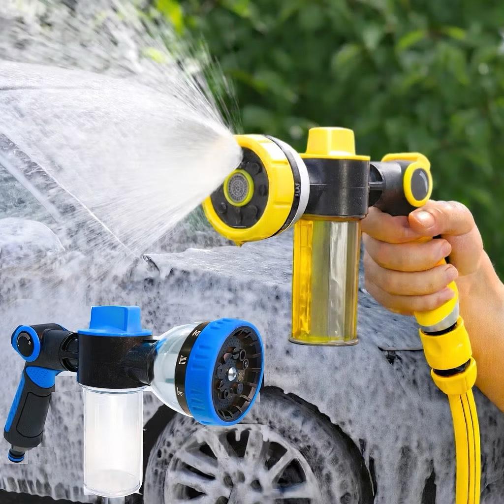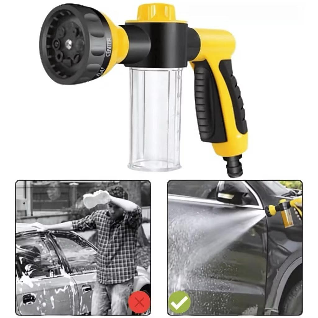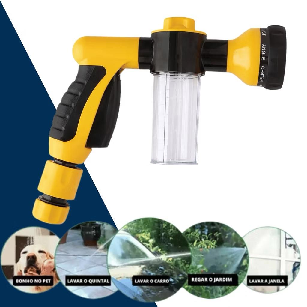 Pistola Esguicho de Mangueira com Reservatório de Sabão Multijato Jatos Lavar Carro Moto Pets Cães Dispenser