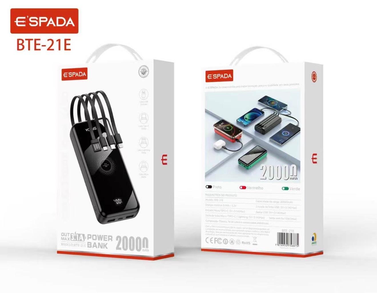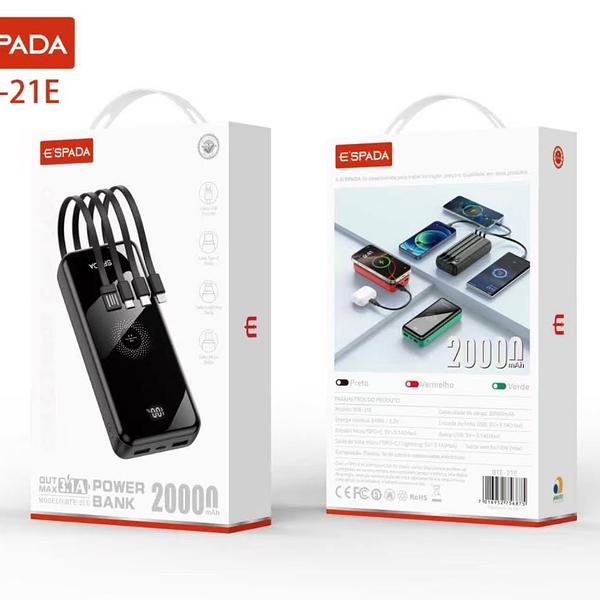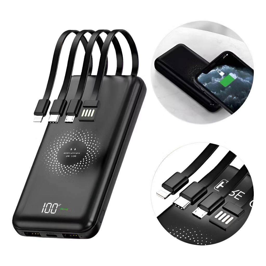 Power Bank 20000mah Carregamento Indução + 4 Cabos Display