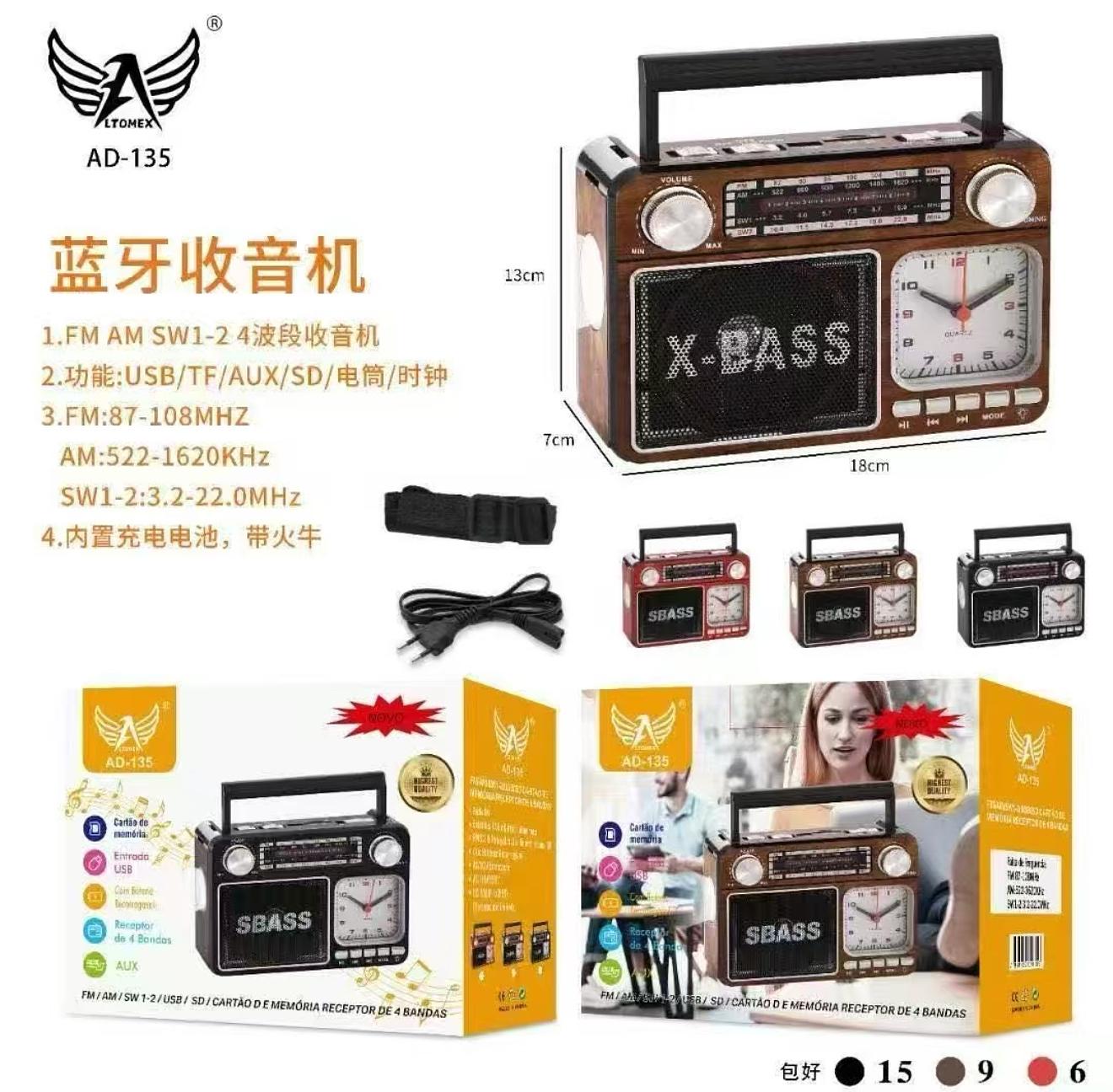 Rádio Portátil Retrô Mp3 Usb Cartão Sd Sw Pen Drive Am Fm AD-135