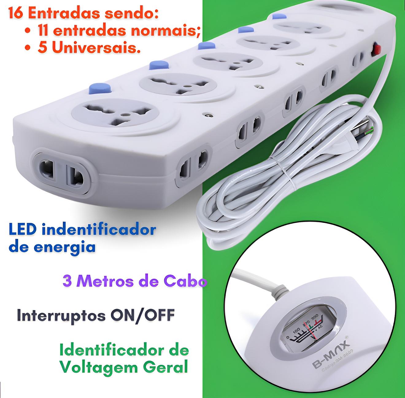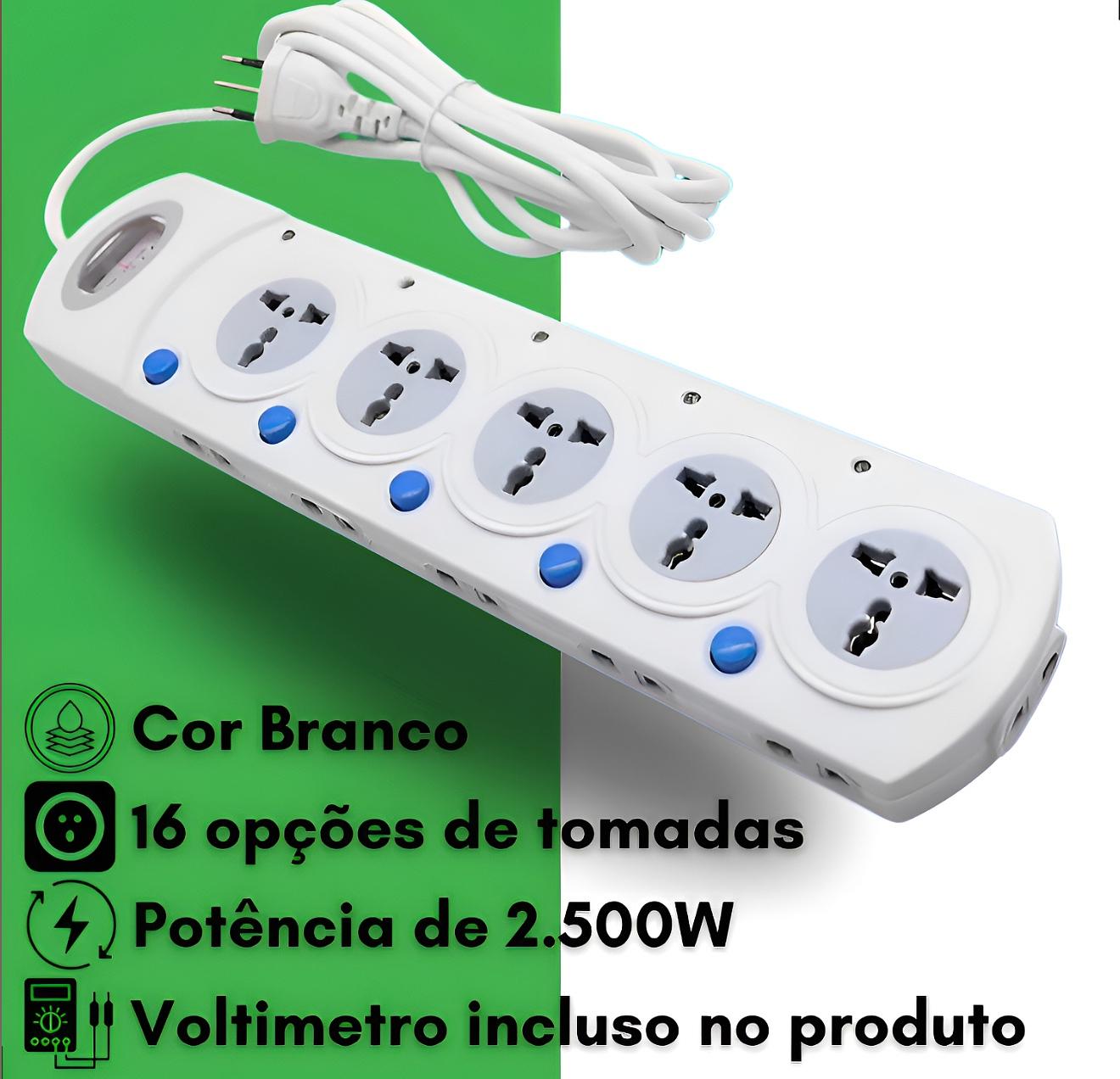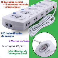 Régua Energia Extensao Fonte 16 Tomada Saidas 3000w