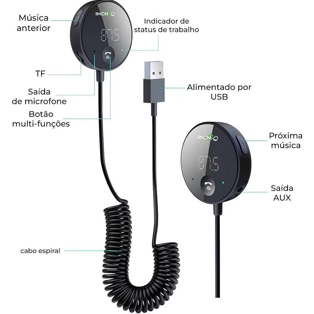 Reprodutor Sem Fio Bluetooth 5.0 para carro universal Mutifuncional Para Veicular IMENSO Original