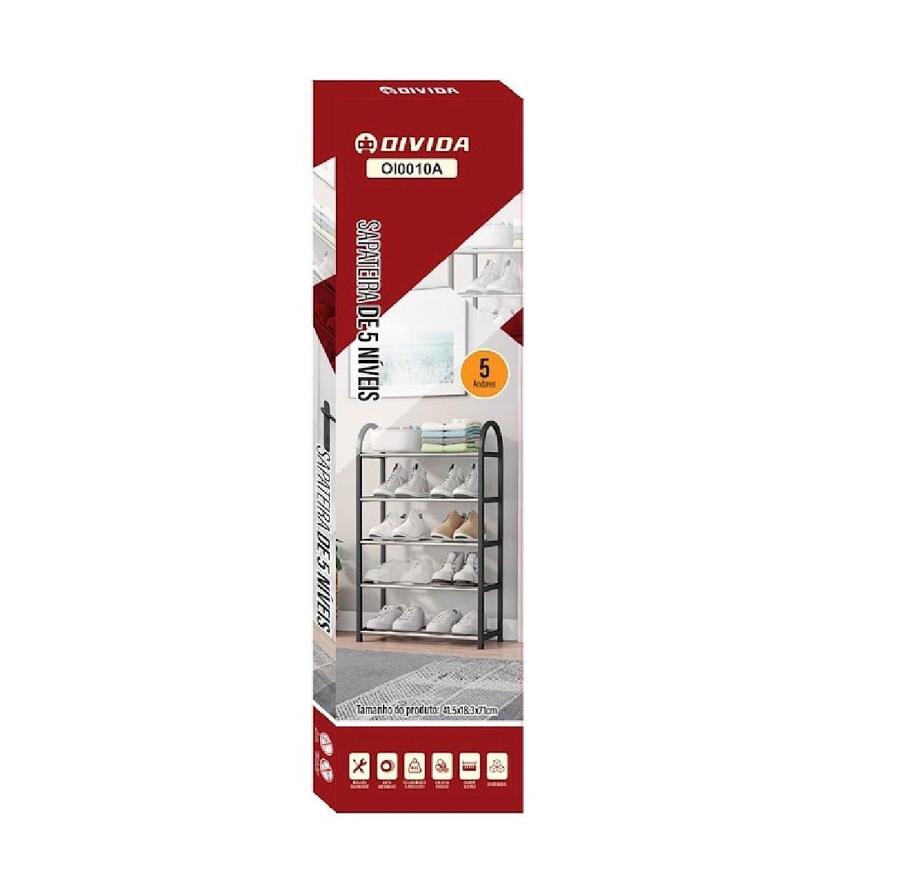 Sapateira 5 Andares Preto Organizadora Multiuso Desmontável Porta Sapatos E Tênis(41.5x18.5x71cm)