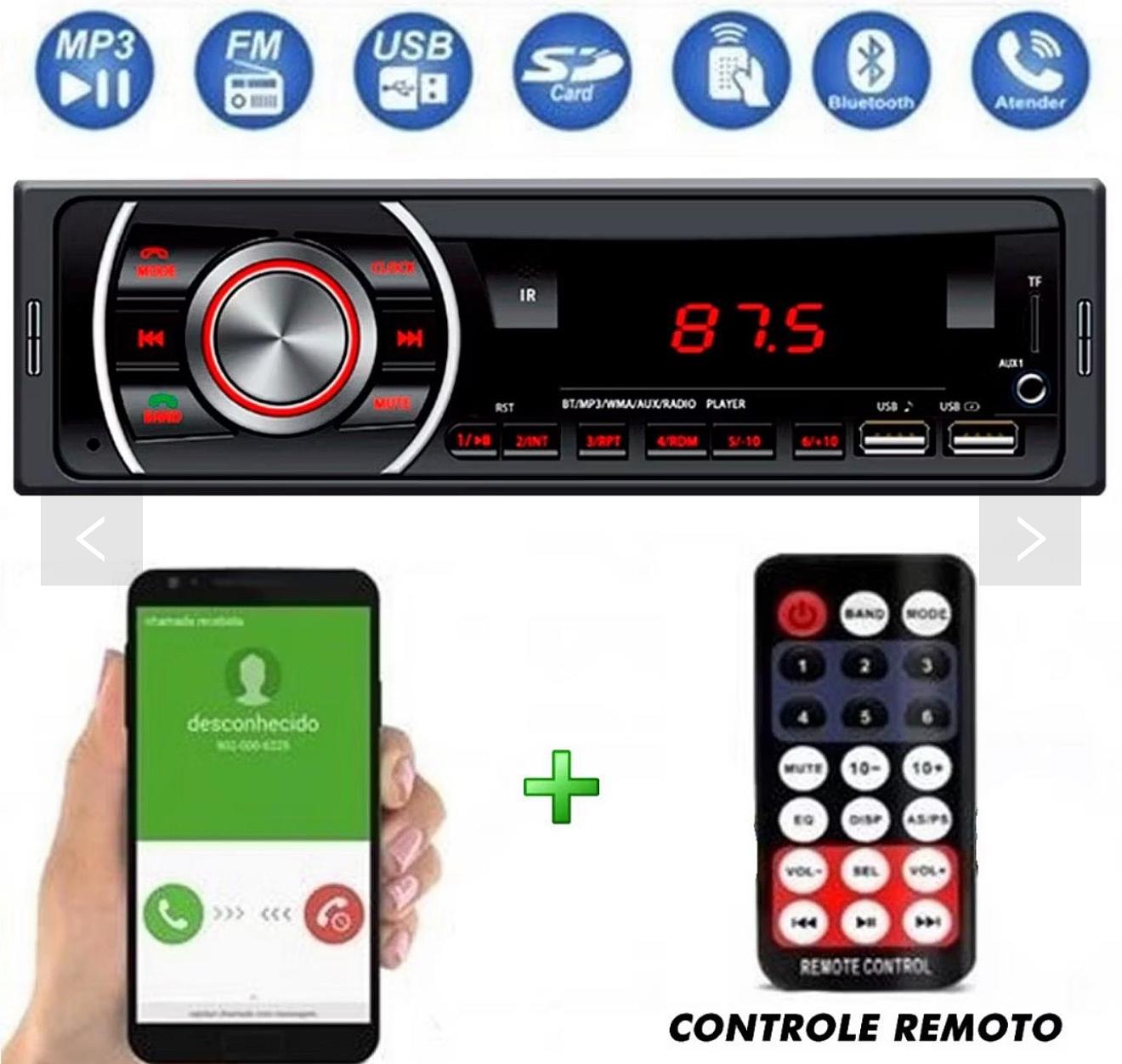 Som Automotivo Mp3 Play Bluetooth Usb Sd Espelhamento Musicas Chamadas