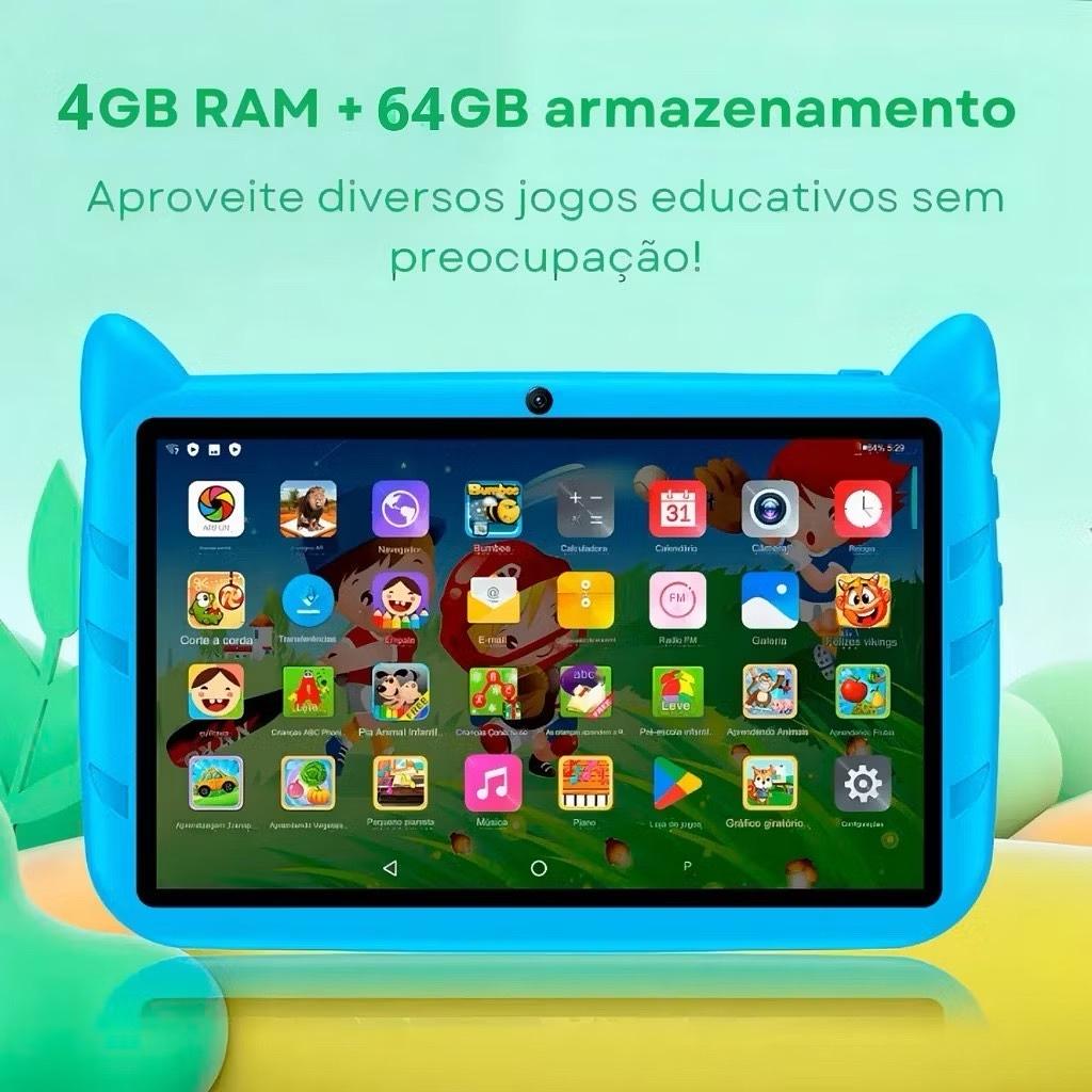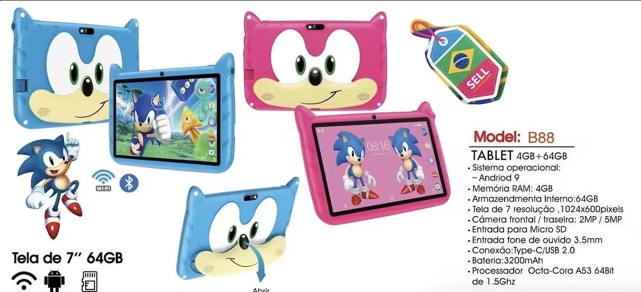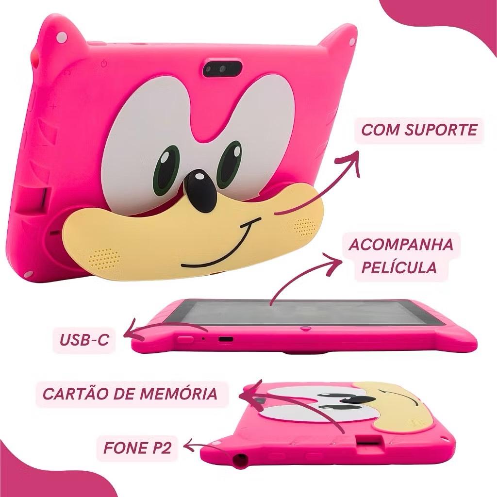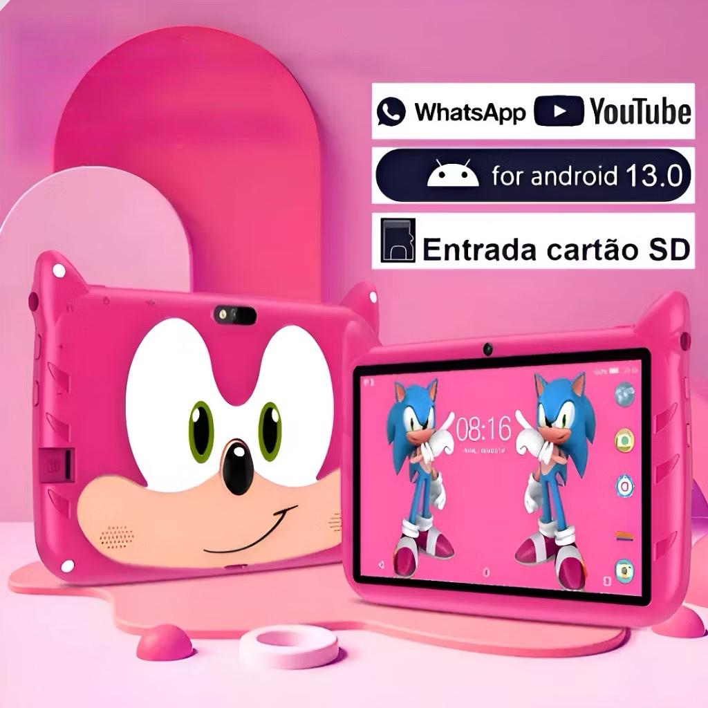 Tablet Infantil 7” Sonic 4GB 64GB Android 13 Câmera Wi-Fi Bateria Duradoura Dual Band Caneta