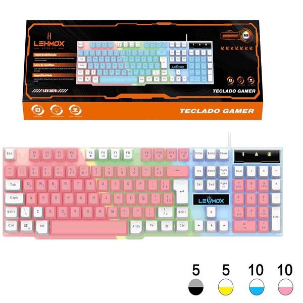 Teclado Gamer LED RGB Rainbow Teclas Iluminadas Conexão USB com Fio Design Moderno Visual Arrojado Confortavel