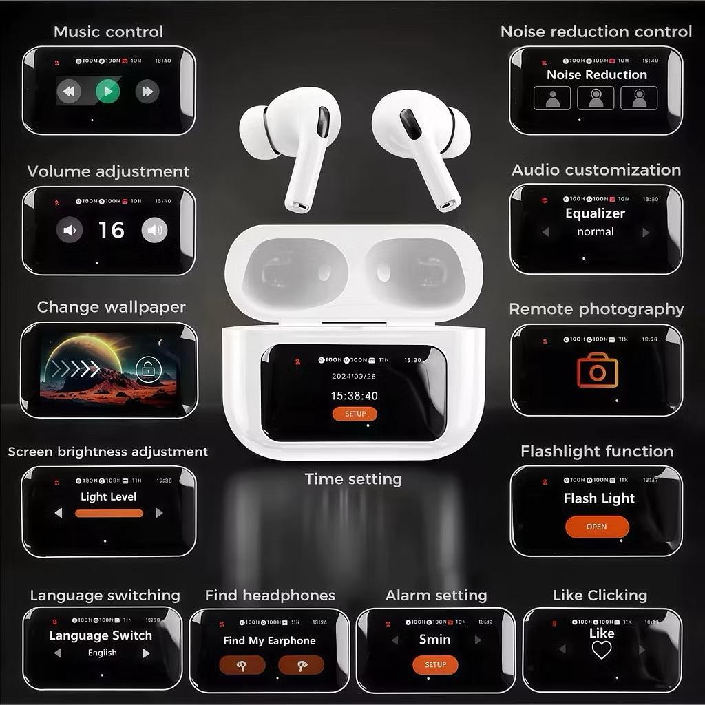 Touch Screen ANC Fones De Ouvido Sem Fio TWS Ruído Cancelando O Fone Bluetooth 5.3 Suporte APP Longa Duração Da B
