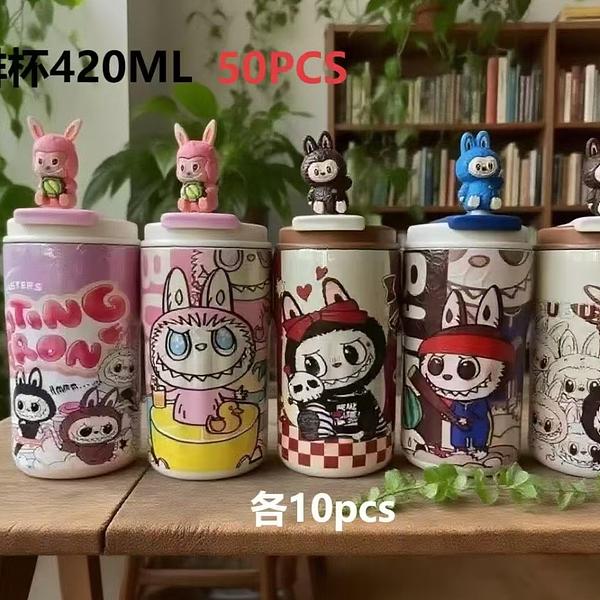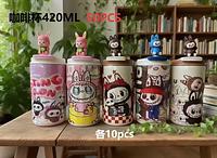 Xícara De Café LABUBU , Cordão Com Caneca A Vácuo De Palha , Garrafa De Água Isolada De Aço Inoxidável À Prova De